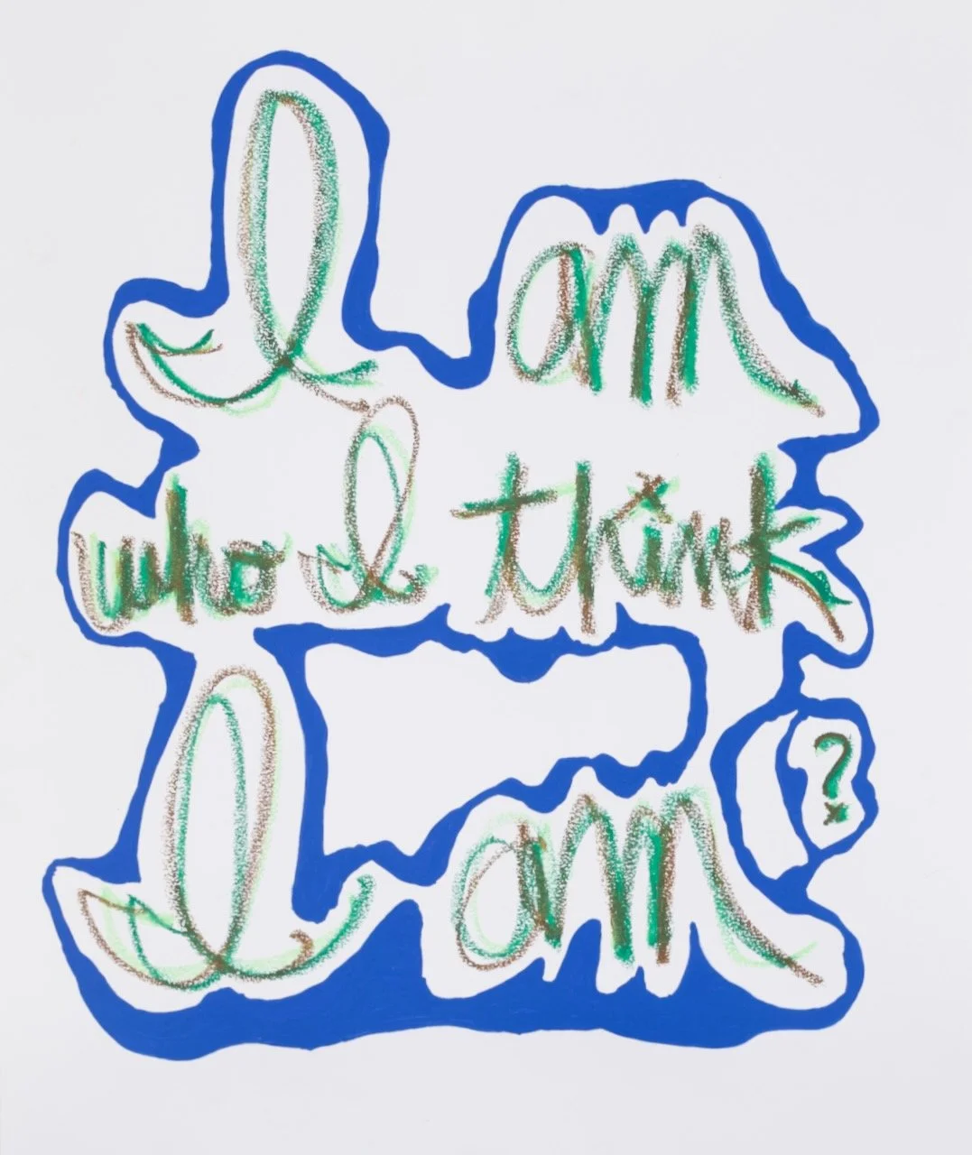 i am who i think i am? p2 Jun 13 Written By Wolfgang Devine i am who i think i am?14 X 17oil pastel and paint marker2024 Wolfgang Devine